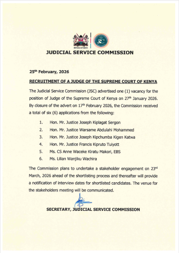 Update: JSC recruitment and selection of a Judge of the Supreme Court of Kenya
