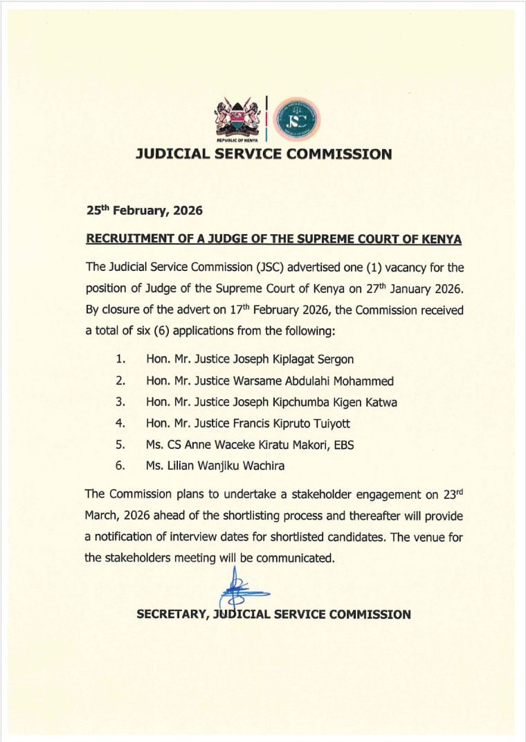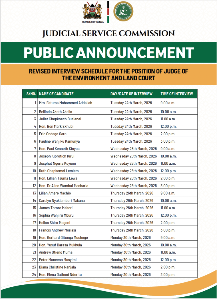 Public Notice: Interviews for the Office of Judge of the Environment and Land Court